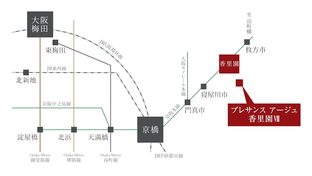 ・京阪本線・快速急行停車駅「香里園」駅まで徒歩12分