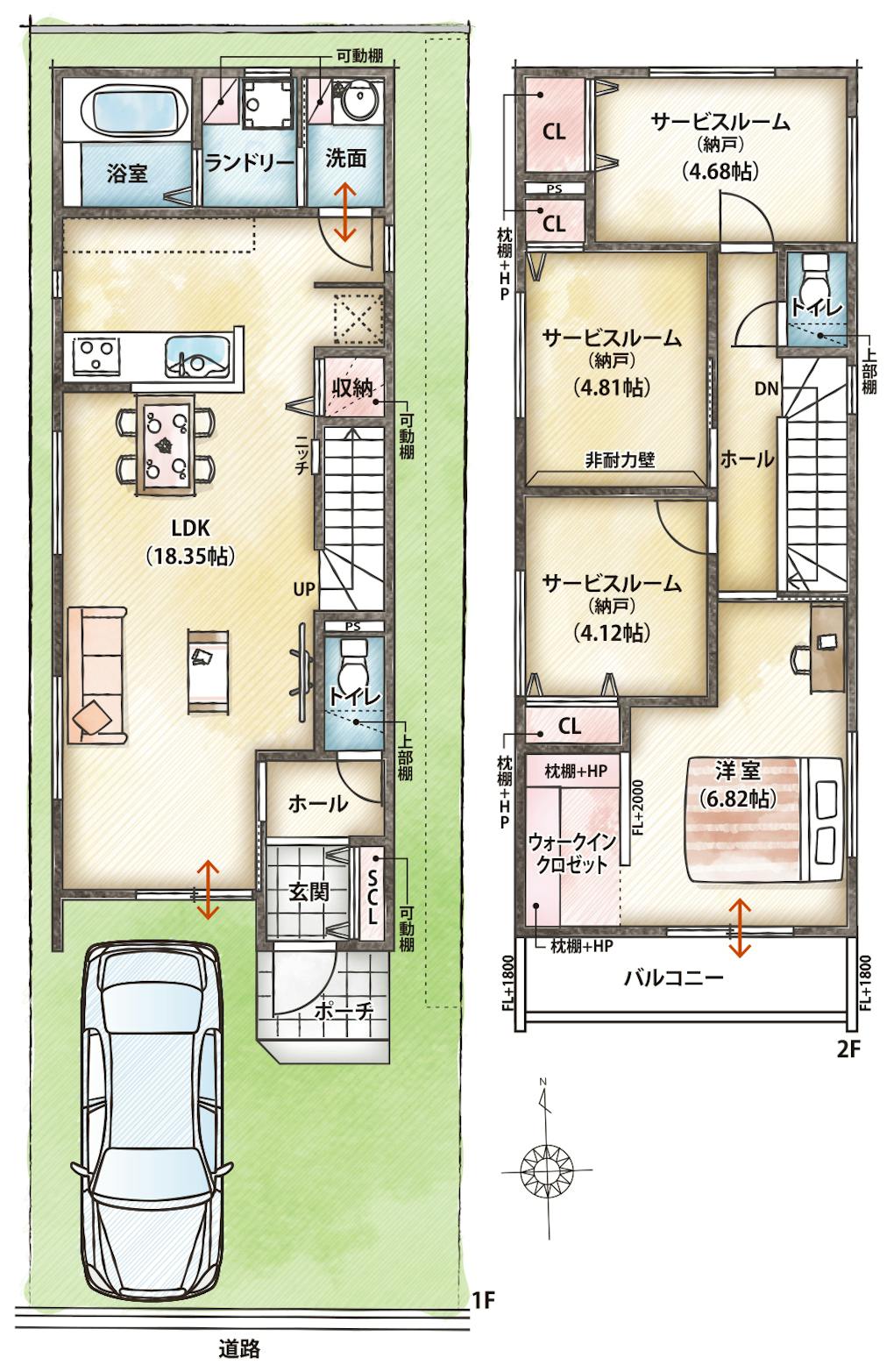 ・3ヶ所のサービスルーム(納戸)は4帖超の広さで窓設置あり。多用途に活用できます。