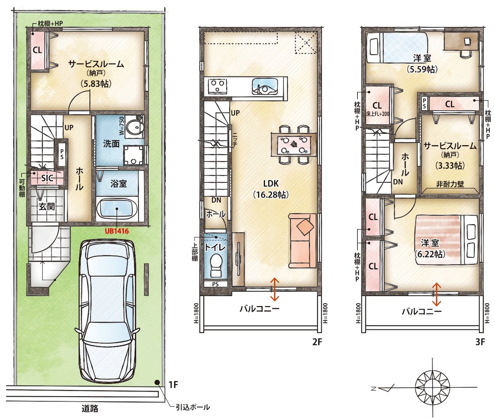 ・雨でも安心の1台分のインナーガレージあり(車種による)