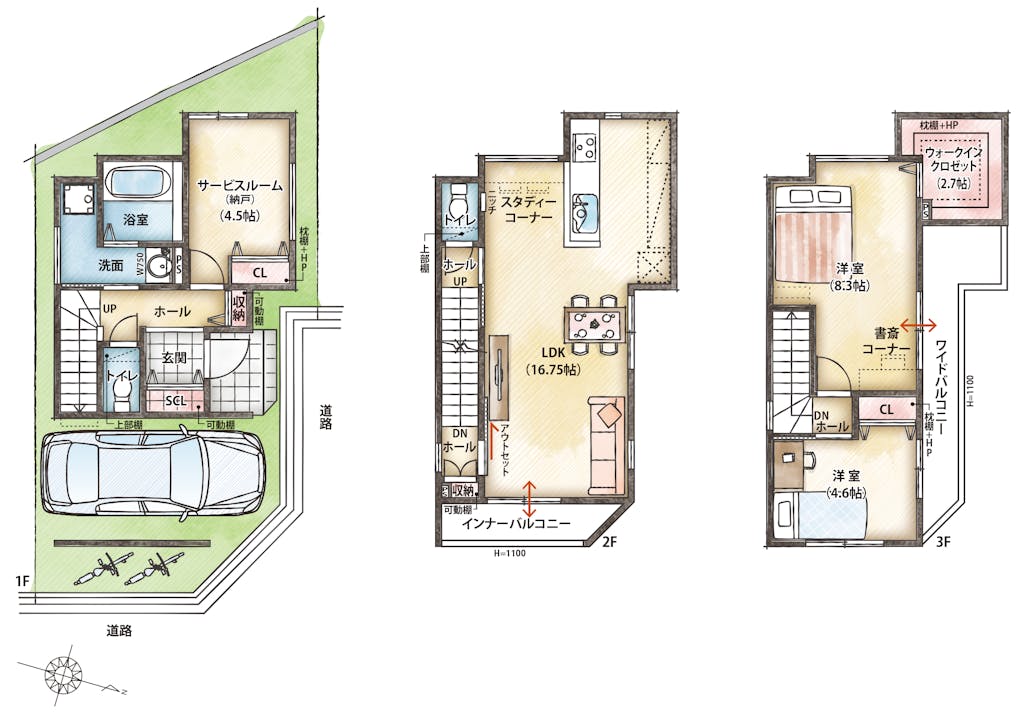 ◆2号地はインナーガレージを採用