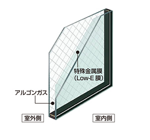 〈Low-E 網入り複層ガラス〉