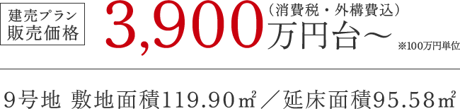 販売価格3,980万円(消費税・外構費込)